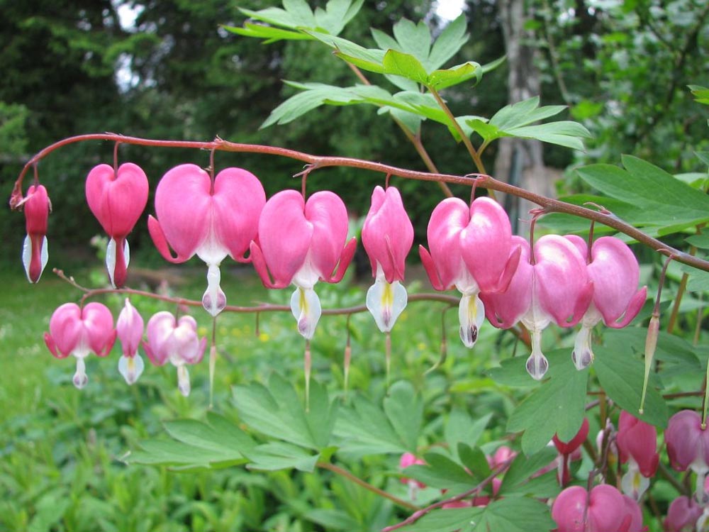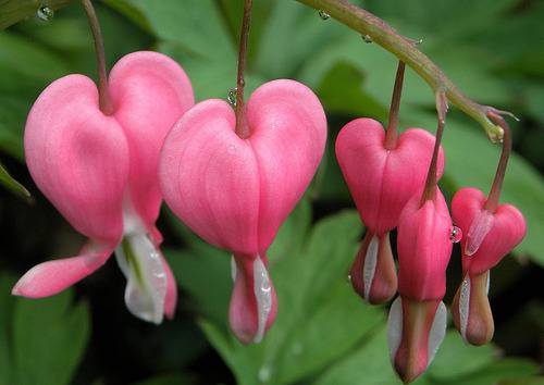 Flor Coração Sangrento é botanicamente chamada como Dicentra spectabilis nativa da Ásia, possui o formato semelhantemente simbólico de um coração, o que a tornou popular em países do mundo. O coração sangrento tem uma folhagem similarmente atrativa com hastes arqueadas e delicadas, as flores tem a forma de coração. Ela cresce em jardins úmidos, juntamente com samambaias e outros amantes da sombra.